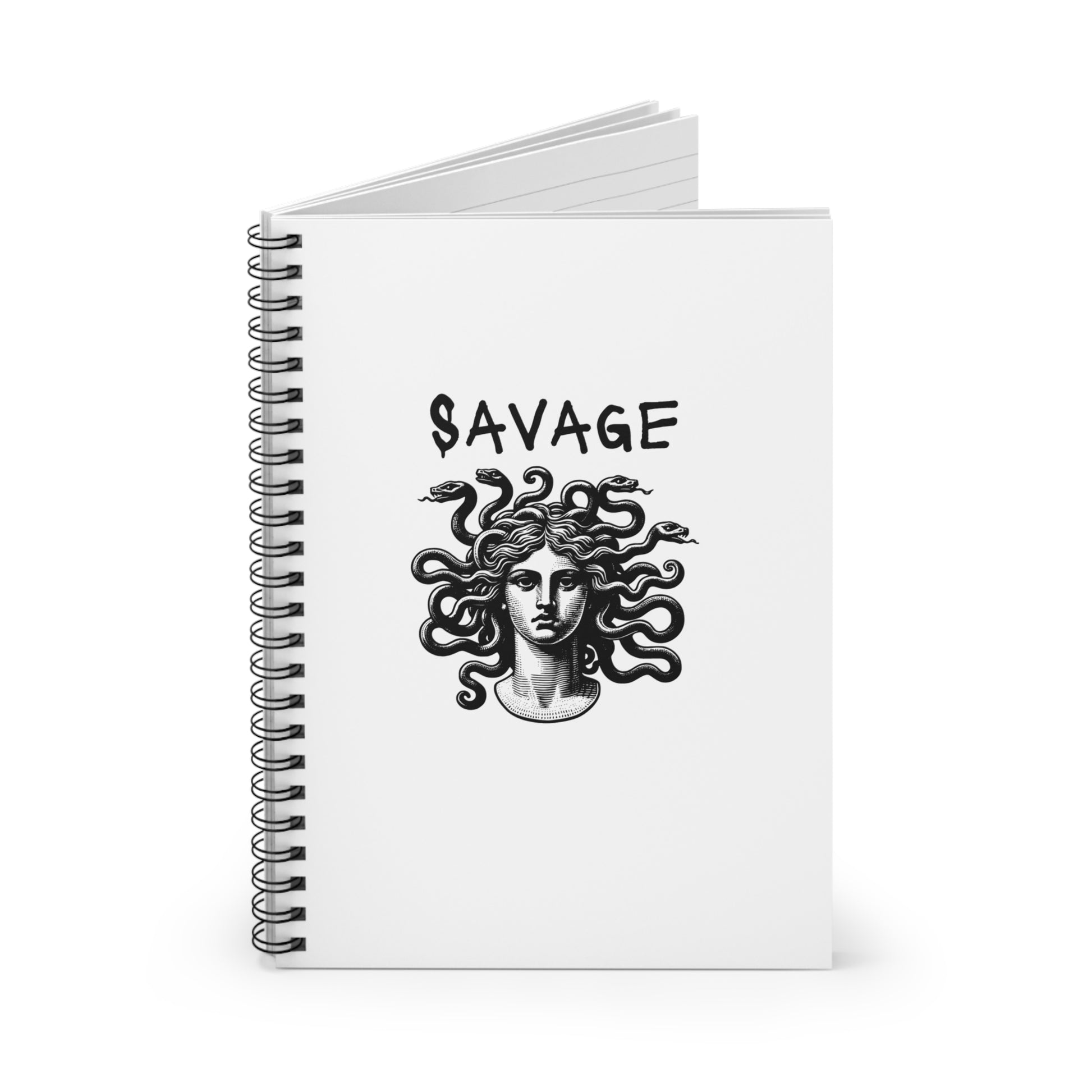 Savage Spiral Medusa Notebook - Ruled Lined Journal for Creatives, Gift for Writers, Unique College Supplies, Medusa Art Notebook